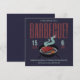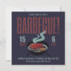 Invitez votre famille et vos amis à ce qu'ils aiment le plus, votre barbecue ! Typographie rouge vif au-dessus d'un barbecue noir avec une image graphique de steak et de poulet, fumée bleu-vert s'élevant. Fond bleu marine. Modèles de mots faciles à refaire, et parfait pour inviter les voisins, réunions de famille, événements de bienvenue à la maison, fêtes au bord de la piscine ou anniversaires spéciaux. N'importe quel moment est bon pour faire un barbecue !