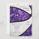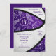 Cette invitation de célébration de basketball mignonne comporte l'image réaliste d'un basketball stylisé abstraitement surdimensionné qui a des panneaux alternés violets et blancs recolorés - un motif de doodle de paisleys, fleurs et plumes en blanc couvre les panneaux violets du basketball - personnalisez avec les détails de sa fête - par katz_d_zynes