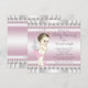 Invitation adorable rose et grise pour une fête de bébé avec une petite ange sur un fond rose et gris argenté et des colliers de perles. Cette invitation rose et grise pour une fête de bébé élégante et mignonne est facilement personnalisable pour votre événement en ajoutant vos détails dans le style de police, la couleur et le libellé de votre choix. Conception imprimée sans perles réelles, nœuds pailletés, etc.