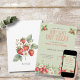 Une charmante invitation à une fête de bébé avec un thème estival aux fraises. Ce design "Sucré aux Baies" présente un fond rose pastel doux avec des fraises illustrées et des fleurs blanches délicates. Les polices sérif et manuscrites élégantes ajoutent une touche stylée. Entièrement personnalisable avec les détails de l'événement, c'est parfait pour une célébration de printemps ou d'été.