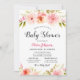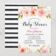 Cette invitation de fête de bébé audacieuse et moderne présente un texte élégant "Fête de bébé" en écriture, encadré par un arrangement aquarelle luxuriant de fleurs de dahlia et de rose pastel, de rose saumon et de pêche, avec un feuillage vert frais sur un fond à rayures noires saisissant. Le texte noir doux et rose vif est entièrement personnalisable pour votre événement. Un motif à rayures roses coordonné habille l'arrière de cette carte élégante à deux faces.
