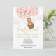 Invitation par courrier pour une fête de bébé fille rose à thème ours en peluche « nous pouvons à peine attendre ». Conçue par Thisisnotme©