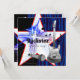 Invitation de fête de bébé garçon rockstar avec un fond de zèbre rouge et bleu marine. Ajoutez vos détails au recto et/ou verso en ajoutant les détails de votre événement, le style de police, la taille de police et la couleur, ainsi que le texte.