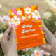 Invitation Fête de Bébé Rétro Groovy Hippie Arche Fleur Daisy