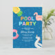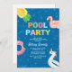 Faites des vagues avec les invitations à la fête d'anniversaire de votre enfant! Nos créations uniques de piscine comprennent un décor de piscine attrayant, de mignons gonflables aquarelles et un modèle texte dynamique et personnalisable. Faites de votre journée un moment spécial dès le début !