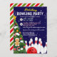 Holiday Bowling Party Décoré sapin de Noël, épingles, et une boule de bowling avec un flocon rouge arrière - plan Invitation. Idéal pour vos évènements d'affaires ou un rendez-vous entre amis et en famille. Vous pouvez facilement le personnaliser avec vos informations. Portez un pull moche et échangez des cadeaux. Vous ajoutez vos informations à cette carte. Le dos de la carte affiche des bandes diagonales festives en blanc, rouge et vert.