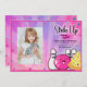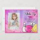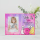 Ces invitations de bowling en forme de boule de bowling de dessin animé seront parfaites pour la célébration spéciale de votre fille. Comprend un fond tie dye rose coloré, des rayures et des étoiles avec un effet coloré tendance et lumineux. Remplacez l'image par la photo de votre enfant pour un effet personnalisé.