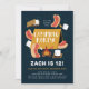 Fête de camping idiote avec hot dogs et guimauves. Les guimauves et les saucisses de Francfort aiment camper dans un texte avec un feu de camp et plaisir.