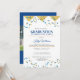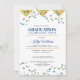 Rassemblez vos amis et votre famille pour célébrer un diplômé spécial avec cette invitation de fête de fin d'études. Le devant est conçu avec une bordure de couleur or, des étoiles dorées et bleues. Le texte du devant comprend : le nom du diplômé, la date, l'heure, le lieu de l'événement, l'adresse et les détails de RSVP. Le verso est un fond bleu assorti avec une grande étoile dorée et le texte : Félicitations, et le prénom du diplômé. Pour personnaliser, il suffit d'insérer vos détails d'événement dans notre modèle facile, en remplaçant le texte d'exemple. Cette invitation est disponible en version imprimée et en téléchargement.