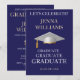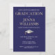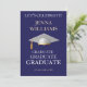Fête de célébration de fin d'études Invitation Or et Blanc. Rassemblez vos amis et votre famille pour célébrer un jeune diplômé spécial. Cette carte est conçue en or brillant et blanc sur fond noir avec un accent de toque de diplômé blanc. Le texte du recto comprend : le nom du diplômé et l'année de promotion. Le texte au verso comprend : les détails de la fête en or et blanc sur fond noir avec un accent de toque de diplômé blanc. Pour personnaliser, il suffit d'insérer vos informations dans notre modèle facile, en remplaçant l'exemple.