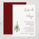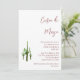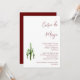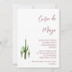 Invitation élégante pour la fête de Cinco de Mayo, avec un design de cactus vert sur fond blanc. Avec lettrage personnalisable rouge, vous pouvez ajouter vos propres informations. Une invitation botanique festive pour votre célébration.