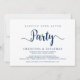 Magnifique fête de conte de fée, Carte d'annonce / invitation de mariage en fuite amoureuse, dans un design rustique moderne, police Bleu marine. C'est parfait pour votre réception de mariage et fête de célébration après le mariage. Ajoutez vos détails dans la police / lettrage correspondant.