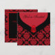 Élégante invitation de fête et d'événement en damas rouge rubis et noir avec garniture de bijoux en rubis rouge.