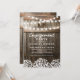 Cartes d'invitation de fiançailles rustiques avec un fond en bois de chêne de grange campagnarde, guirlande lumineuse scintillante, fleurs de baby's breath, votre monogramme et modèle de mariage de fiançailles moderne. Cliquez sur le bouton « Personnalisez-le » pour une personnalisation plus poussée de ce modèle. Vous pourrez modifier tout le texte, y compris le style, les couleurs et les tailles. Vous trouverez des articles de mariage assortis plus bas sur la page, si toutefois vous ne trouvez pas ce que vous cherchez, veuillez me contacter.