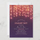 Invitations de la partie d'engagement Creative String Lights. Des lampes à cordes créatives et des glaces de parties scintillant sur un arrière - plan mauve sombre étoilé. Le meilleur pour n'importe quelle fête de fiançailles. Conçu par http://superdazzle.com