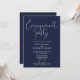 Invitation Fête de fiançailles élégante écriture bleu marine