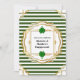 Un beau design de rayures horizontales vert forêt et blanc encadré par un bord festonné en faux or sur fond blanc. Il y a deux trèfles à quatre feuilles verts sur le devant qui donnent une impression d'élégance et de style.