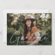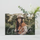 Invités Invitations pour célébrer la grade avec nos invitations élégantes à la remise des diplômes photo. Les invitations à la remise des diplômes présentent la photo du diplômé avec "Graduate" dans une superposition de script de calligraphie moderne blanche. Personnalisez le devant de l'invitation moderne en ajoutant le nom du diplômé, le nom de l'école et l'année de fin d'études. L'invitation inverse pour afficher les détails de votre fête de remise de diplômes et un motif géométrique pointillé noir et blanc tendance.