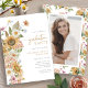 Faites une impression durable avec cette magnifique invitation à la fête de remise des diplômes, avec un bouquet latéral gracieux de fleurs sauvages rose et bleu poussiéreux peints à la main avec des tournesols jaunes rustiques. L'élégant script d'or ajoute chaleur et sophistication, tandis que le dos présente une photo grandeur nature encadrée par un motif d'aquarelle coordonné pour une finition polie. Cette invitation allie élégance boho et personnalisation chaleureuse, parfaite pour les fêtes du printemps et de l'été. Une façon intemporelle d'annoncer votre réussite, cette invitation vous assure que votre journée spéciale est à la fois élégante et mémorable - créez un moment à retenir!