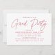 Invitations de la fête de graduation moderne et amusants avec "Grad Party" dans un script magenta branché avec les détails de votre fête de graduation affichés ci-dessous. L'invitation de la fête de graduation simple s'inverse pour montrer un mignon magenta et un motif géométrique pointillé blanc.