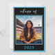 Moderne et chic, cette invitation à la remise des diplômes allie le noir et le blanc classique à des accents de bleu vif. Le design minimal est un design simple et amusant pour célébrer le grand jour du diplômé. Le dos affiche la photo préférée de votre diplômé. Créé par Simply Farmhouse Press.