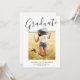Cette invitation à la remise de diplômes moderne est une façon élégante d'annoncer vos nouvelles passionnantes. Le devant de la faire-part de remise des diplômes comporte des lettres de calligraphie qui se lisent "Graduate" au-dessus d'une grande photo du diplômé. Ajoutez le nom du diplômé, l'école et l'année de fin d'études sous la photo. Au verso de l'invitation de la fête de remise de diplômes, ajoutez facilement les détails de votre fête dans le modèle fourni.