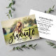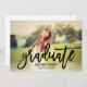 Annoncez votre diplômé dans le style en présentant leur photo senior préférée avec ce design de superposition avec le script en lettres "Graduate". Personnalisez le libellé noir sur le devant avec le nom de la grade et l'année de classe. Le dos de la carte invitations famille et amis à une fête de remise de diplômes pour célébrer l'occasion. La couleur blanche arrière - plan sur le dos peut être customisée.