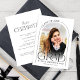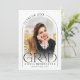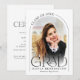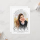 Cette simple carte de graduation minimaliste en noir et blanc sert à la fois de faire-part de graduation et d'invitation à la grande fête, et comporte une photo, arche cadre et élégante typographie moderne.