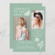 Photo Graduation Party Invitations Grayed Jade Green Butterfly Photo avec le texte simple "Félicitations à la Grad" accentué avec une fleur et des papillons avec deux de vos photos préférées et personnalisées avec le nom et les détails de la fête de graduation dans élégante typographie en écriture blanche. Personnalisez en modifiant le texte dans les zones de texte fournies et en ajoutant vos photos préférées. Conçu par ©2023 Evco Studio www.zazzle.com/store/evcostudio