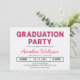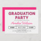 Invitation de la partie Graduation moderne avec le mot "Graduation Party" contre un arrière - plan de bandes grises en diagonale. La carte est assortie d'un côté du dos rose. Personnalisez-le en remplaçant le texte de l'espace réservé pour ajouter vos informations. Pour plus d'options, cliquez sur le bouton "Customiser". *Veuillez noter que le filigrane Zazzle qui apparaît dans l'aperçu du zoom n'apparaîtra PAS sur le produit imprimé final. © Bois de rose et agrumes