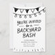 Cette invitation ludique en noir et blanc présente des lettres dessinées à la main et des doodles festifs comme des lampes à cordes, des drapeaux et des feux d'artifice, parfaits pour un jardin décontracté. Avec son style audacieux et informel, il est idéal pour les fêtes d'été, les biscuits d'anniversaire ou les réunions de famille. Personnalisez-le avec les détails de votre événement pour un invitation de fête amusant et sans chichi.
