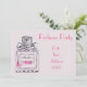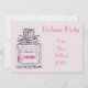 Une invitation à la fête pour une fête foraine de parfums. Cette invitation entièrement personnalisable présente un arrière - plan rose pâle avec une illustration originale d'une bouteille de parfum d'art avec du texte personnalisable.