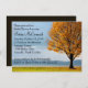 Une photo d'un arbre d'érable pendant la saison craquante d'automne d'automne, c'est feuille tournant jaune, orange et brun. C'est feuille commencent à incomber à l'herbe verte ci-dessous. L'arrière - plan montre une silhouette molle de scène de montagne avec le ciel nuageux. Personnalisez cette invitation avec votre information nuptiale de douche. Le dos a l'abondance de la pièce pour l'information d'enregistrement. Ces invitations sont grandes pour le thème rustique ou d'érable d'arbre d'automne ou d'automne de saison.