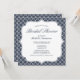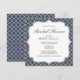 Une invitation nuptiale chic de douche de bleu marine avec une police classique de manuscrit et un joli motif de quatrefoil.