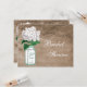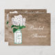 Les invitations rustiques élégantes de Fête de la mariée de pays avec une illustration vintage mignonne de fleur de pot de maçon en verre vert et blanc et d'hortensia blanc sur un chêne brun chic minable élégant ont effacé l'arrière - plan en bois patiné d'effet de grain. Invitations modernes chics, à la mode, à la mode parfaits pour le ressort, été, chute/automne et douches d'hiver. Tout les texte peut être facilement customisé pour répondre à vos besoins et vous pouvez changer le style de police, la couleur et la taille de la police si vous désirez. Si vous avez besoin de n'importe quelle aide customisant votre produit svp me contactez par mon magasin et je serai heureux d'aider. NOTEZ SVP : Tous les invitations sur Zazzle ont des images imprimées d'appartement.