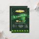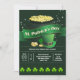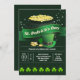 Illustration ludique et tendance d'un chapeau vert avec un trèfle à quatre feuilles sur sa jante reposant sur une bannière verte ondulée qui porte les mots "Saint Patrick's Day". Une casserole d'or remplie de pièces d'or a des étoiles brillantes blanches autour, dressée contre un arrière - plan vert foncé qui a des modèles blancs pour votre libellé et une bannière de trèfle shamrock le long du bord inférieur.