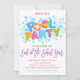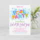 Summer Pool Party, School's Out Pool Party Des lettres de couleurs vives sur un arrière - plan blanc rendent cette invitation de fête attrayante et amusante! Ajoutez les détails de votre fête à l'aide du formulaire modèle. Un texte supplémentaire peut être ajouté au verso si nécessaire à l'aide de la fonction Personnaliser.