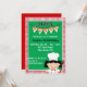 Cette invitation personnalisable de Pizza Party comprend une bannière de tranches de pizza et une fille habillée en chef.