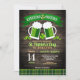 Amusants "cheers and beers" St. Patarick's Day invitations de fête avec un arrière - plan de grains de bois foncé, tartan vert et orange, 4 trèfle de feuilles, amusant, polices de fantaisie et deux steins de bière verte torréfier