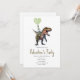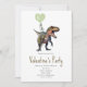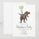 Une invitation à une fête de la Saint-Valentin avec une illustration d'un dinosaure t rex tenant un ballon en forme de cœur vert.