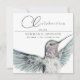 Un colibri d'aquarelle peint à la main avec des détails étonnants et des teintes subtiles d'aqua et de rose décore cette célébration unique, délicate et aimante de la vie invitation en noir et blanc classique