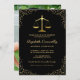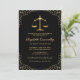Fêtez votre voyage en justice avec nos élégantes invitations à des soirées de remise de diplômes en droit. De classe et de raffinement époustouflants, ces pièces présentent un décor noir élégant qui peut être ajusté à n'importe quelle teinte, une parties scintillant dorée chatoyante, et les échelles emblématiques de la justice. Avec un modèle texte moderne et facilement personnalisable et une option pour présenter la photo du diplômé à l'envers, ces invitations sont plus qu'un simple appel à une fête - elles sont un témoignage de votre réussite durement méritée.