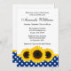 Un motif amusant de polka blanc et bleu marine avec des tournesols. Une invitation parfaite à la douche nuptiale en été. customisez facilement avec vos détails de fête !