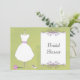 KRW Modern Mariage Dress Bridal Shower Invitation dans les tons vert et rose. Facilement customisé pour votre événement.Postage correspondant disponible.