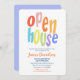 Une invitation à une fête de maison ouverte amusante. Cette invitation fabuleuse présente une typographie moderne minimale sur un fond blanc. Facile à personnaliser avec vos propres détails de fête de maison ouverte ou de célébration d'anniversaire.