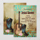 Jolie invitation de fête de mariage champêtre vintage marron et bleu avec guitare et bottes de cowboy. Cette invitation de fête de mariage champêtre est facilement personnalisable pour votre événement avec le style de police, la couleur et la formulation de votre choix.