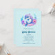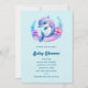 Invitation à une fête de naissance avec une illustration adorable. Un dauphin bleu et violet entouré de fleurs sous-marines charmantes.
