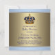 Invitation modèle pour une fête de bébé élégant petit prince bleu bébé et couronne dorée. Cette invitation adorable fête de bébé prince bleu bébé est facilement personnalisable pour votre événement en choisissant simplement le bouton "Personnalisez-le !" pour commencer à ajouter les détails de votre événement, le style de police, la taille et la couleur de la police, ainsi que le libellé. Veuillez noter que tous les autocollants, cartes et modèles d'invitation que vous trouverez sur Zazzle sont des graphiques imprimés sans véritables bijoux, rubans, reliefs, gaufrures ou pièces ajoutées.