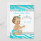 Invitation Fête de naissance Princesse Fille Bébé Turquoise Z