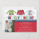 La magnifique invitation à la fête de la fête de la Arrière - plan rouge et blanche présente des photos de famille. "Que tous vos sueurs soient laides et brillants" apparaît en haut en plusieurs couleurs. Customisez avec votre salutation personnelle, vos noms de famille et vos noms individuels.